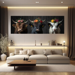 🐂 „Rindergang“ – Wo Blumen auf Kuhliebe treffen – Panorama Leinwand 180×60 cm