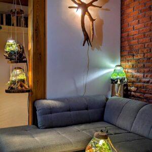 Dieser außergewöhnliche Flaschengarten mit Licht kann sowohl als Pflanz-Terrarium wie auch als Pflanzenaquarium genutzt werden. Dank der Beleuchtung handelt es sich um ein nahezu autarkes Öko- System welches keine Pflege benötigt. Die geschmolzenen Gläser sind Einzelstücke, die in Handarbeit hergestellt werden und sind somit stets Unikate. Die im Kork-Modul integrierte 2,5W LED – Beleuchtung (Tageslicht) dient dem Pflanzwachstum und als passive Beleuchtung für Räume. Dank Zeitschaltuhr muss der Garten so gut wie nicht gepflegt werden. Es reicht ihm 1x im Monat einen Schluck Wasser zu geben oder beim Pflanzaquarium ein Drittel des Wassers zu wechseln. Die extrem lange Lebensdauer der LED von 50.000 Stunden( ca. 15 Jahre bei 8 Stunden täglicher Beleuchtung) bietet höchste Qualität und Langlebigkeit, sodass du viele Jahre Freude an deiner Oase haben wirst. Kork ist ein ebenso langlebiger und nachwachsender Rohstoff weswegen dieses Produkt zu fast 100% aus natürlichen und recyclebaren Rohstoffen besteht. Das Glas ist Mundgeblasen und besteht zu 100% aus Recyceltem Rohstoff. Fertiggestellt wird das ganze in Handarbeit in St. Georgen im Schwarzwald. Nachhaltig, ökologisch und Fair.