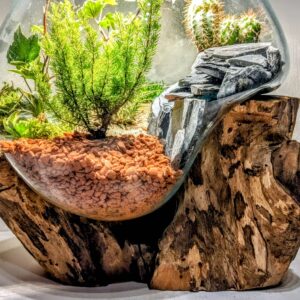1x Geschmolzenes Glas perfekt angepasst auf das dazugehörige Wurzelholz Maße: ca. 20cmx20cmx20cm (4-6l)