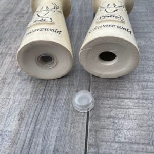 Durch eine Öffnung von unten, welche mit einem Kunststoffdeckel verschlossen ist, kann man die Streuer mit Salz und Pfeffer befüllen.