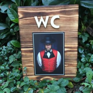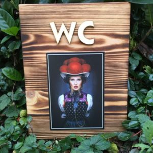Zwei stylische Holzbretter im Schwarzwaldflair mit WC Kennzeichnung.